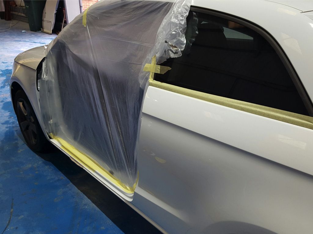 The 2015 Audi A1 came in with damage all down the passenger side. We replaced the passenger front door and repaired the passenger wing and passenger rear quarter.
